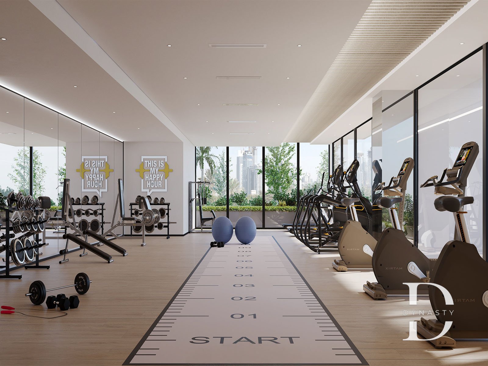 - Fully equipped indoor and outdoor gyms